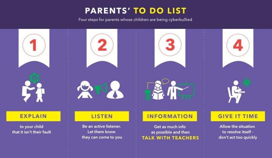 Listen to your child to understand the situation. This has been identified by children and young adults as the thing that helps the most. And the more people they can talk to, the better.